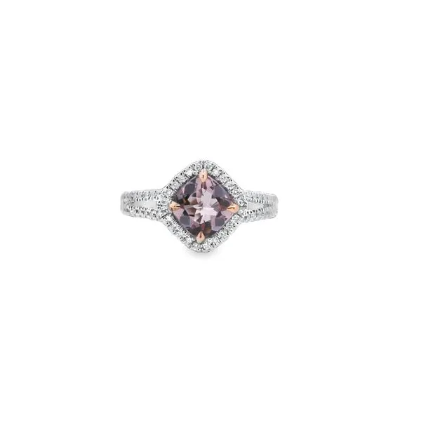 (315) 253-700018K White Gold Morganite and Diamond Ring with Rose Gold Claw Prongs (1.09Morganite .30TDW)