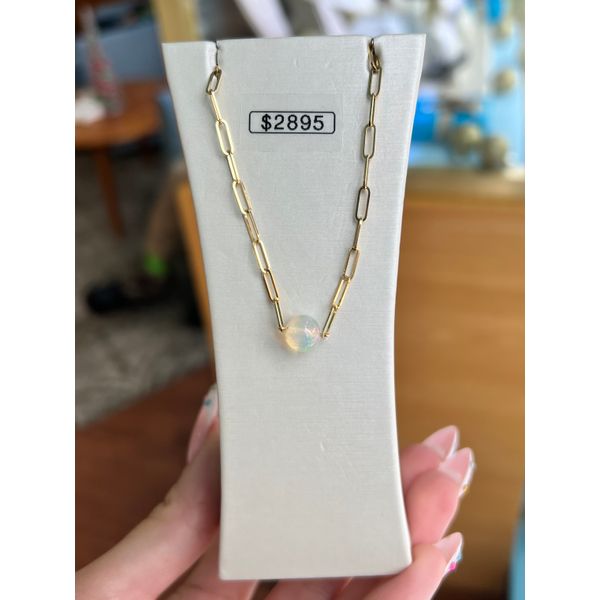 (315) 253-700014K Yellow Gold Opal Sphere Necklace on Paperclip Chain with Lobster Claw Clasp