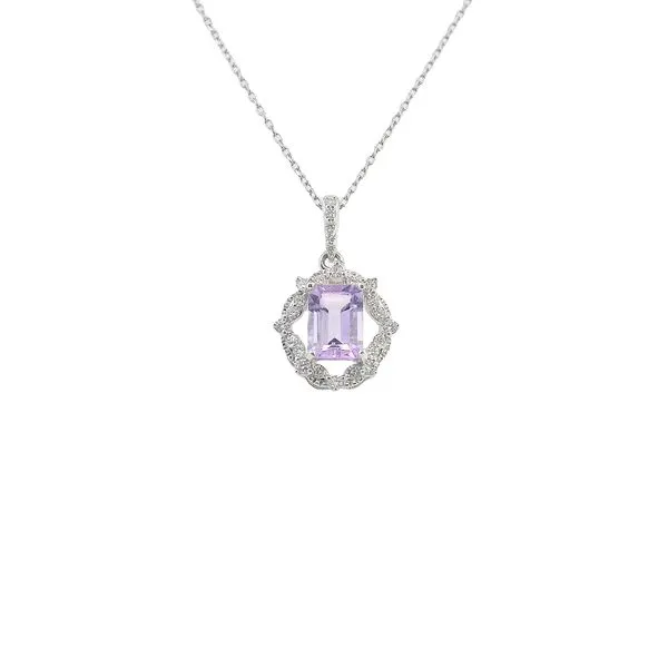 (315) 253-700014K White Gold Pink Amethyst and Diamond Framed Pendant with Diamond Cut Lobster Claw Clasp