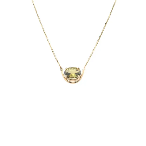 (315) 253-7000Sterling Silver and 14K Yellow Gold Custom 9x7mm Chrysoberyl Necklace