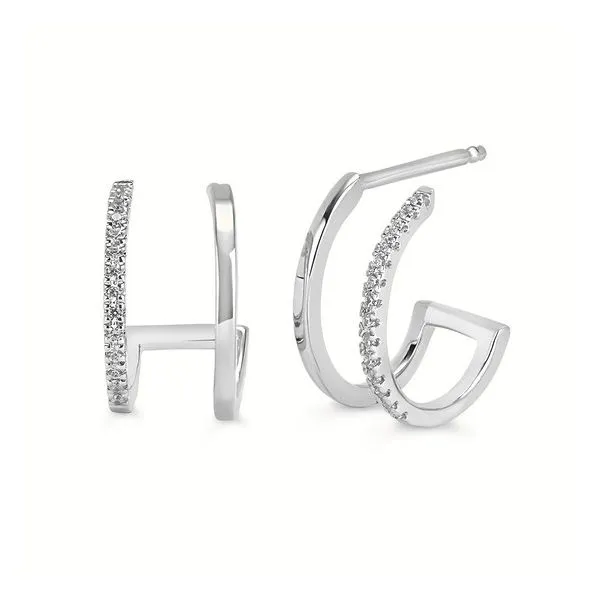 (315) 253-700014K White Gold Diamond and High Polished Double -Hoop Look Pierced Earrings