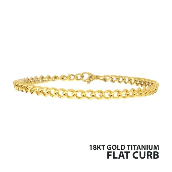 (315) 253-70004.35mm 18K Gold IP Titanium Flat Curb Chain Bracelet with Lobster Clasp -7IN