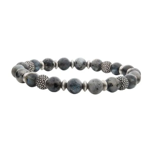 (315) 253-70008.5mm Labradorite Stones with Black Oxidized Beads Bracelet