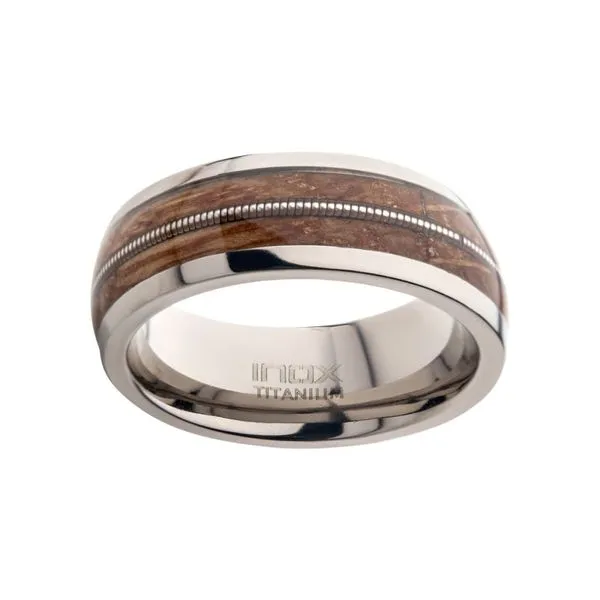 (315) 253-70008mm Clear Resins & Whiskey Barrel Wood Inlay Titanium Comfort Fit Guitar String Ring Size 10