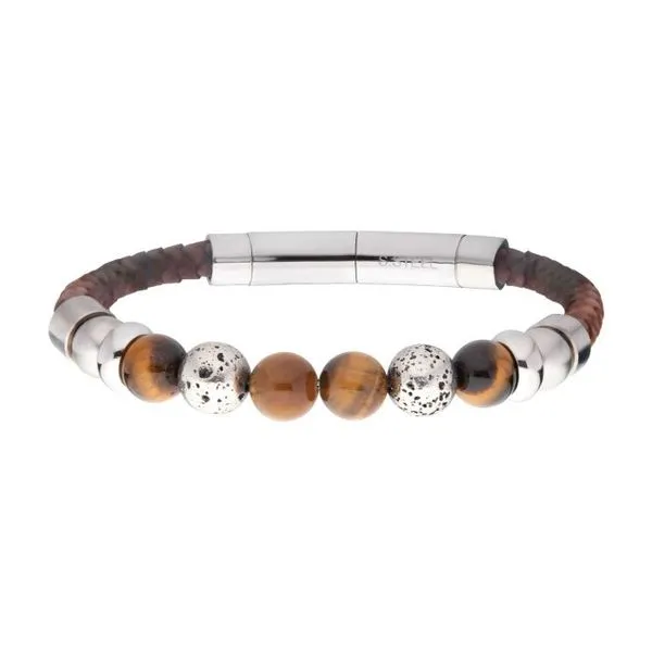 (315) 253-7000Brown Braided Leather with Tiger Eye Stone Bead Hybrid Bracelet