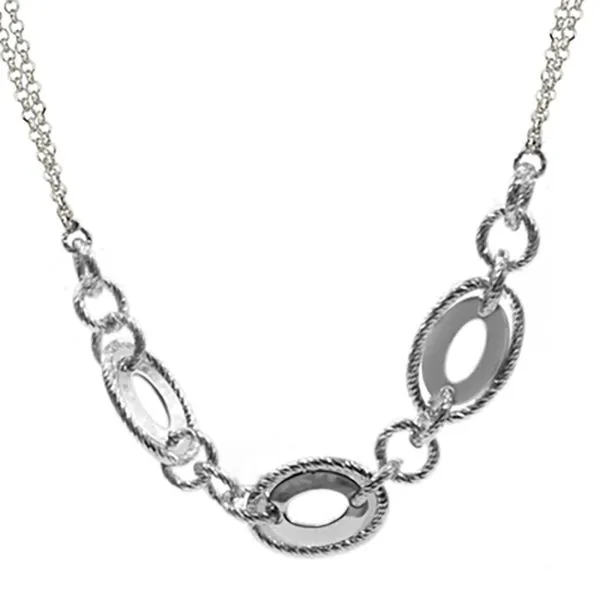 (315) 253-7000Sterling Silver Oval Link Necklace with Patterned Detail and Double Adjustable Chain-Lobster Claw Clasp