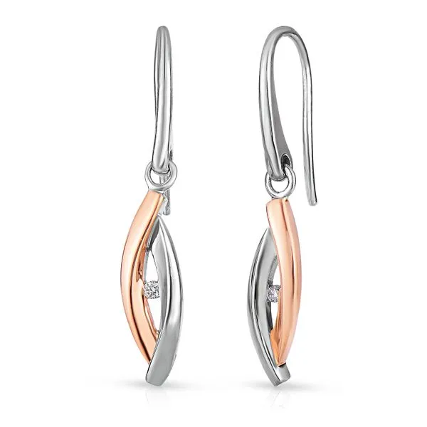 (315) 253-7000Sterling Silver and Rose Gold Plated Diamond Dangle Earrings