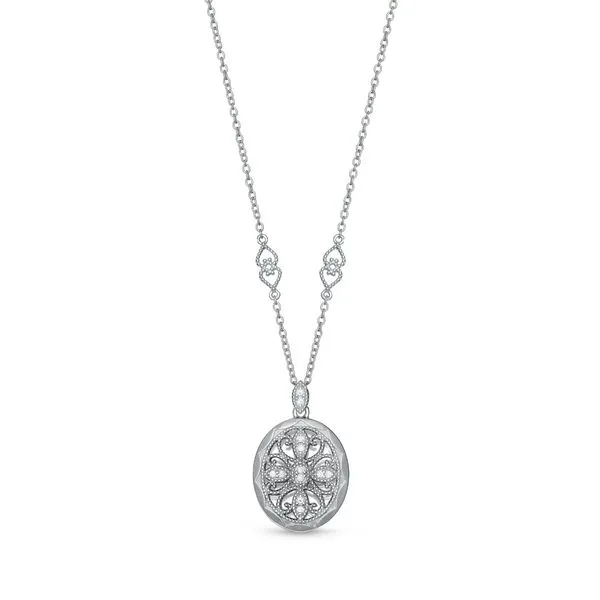 (315) 253-7000Sterling Silver Oval Locket Slide Necklace with Cubic Zirconia Accents
