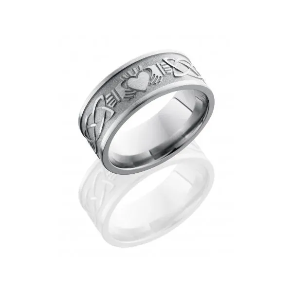 (315) 253-7000Titanium 9mm Flat Band with Celtic/Claddagh Pattern