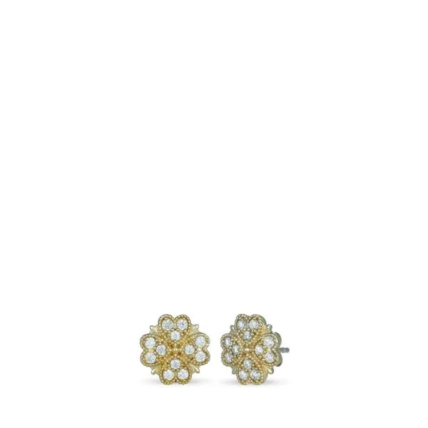 (315) 253-7000Yellow Gold Plated Clover Heart Earrings with Cubic Zirconia